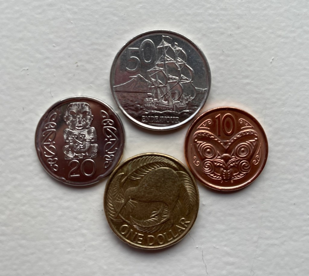 So it was a pleasure to me when, for this trip, we needed to get separate currencies for not one or two, but 5 separate countries: Egypt, Jordan, Thailand, Australia and New Zealand. Each has been interesting, but my favorite has been that of New Zealand, with its Māori images, sailing ships, and kiwis. It underscores the fact that I’m in a different place, and seeing something new. Indeed, the currency is, to me, part of the essential romance of travel.