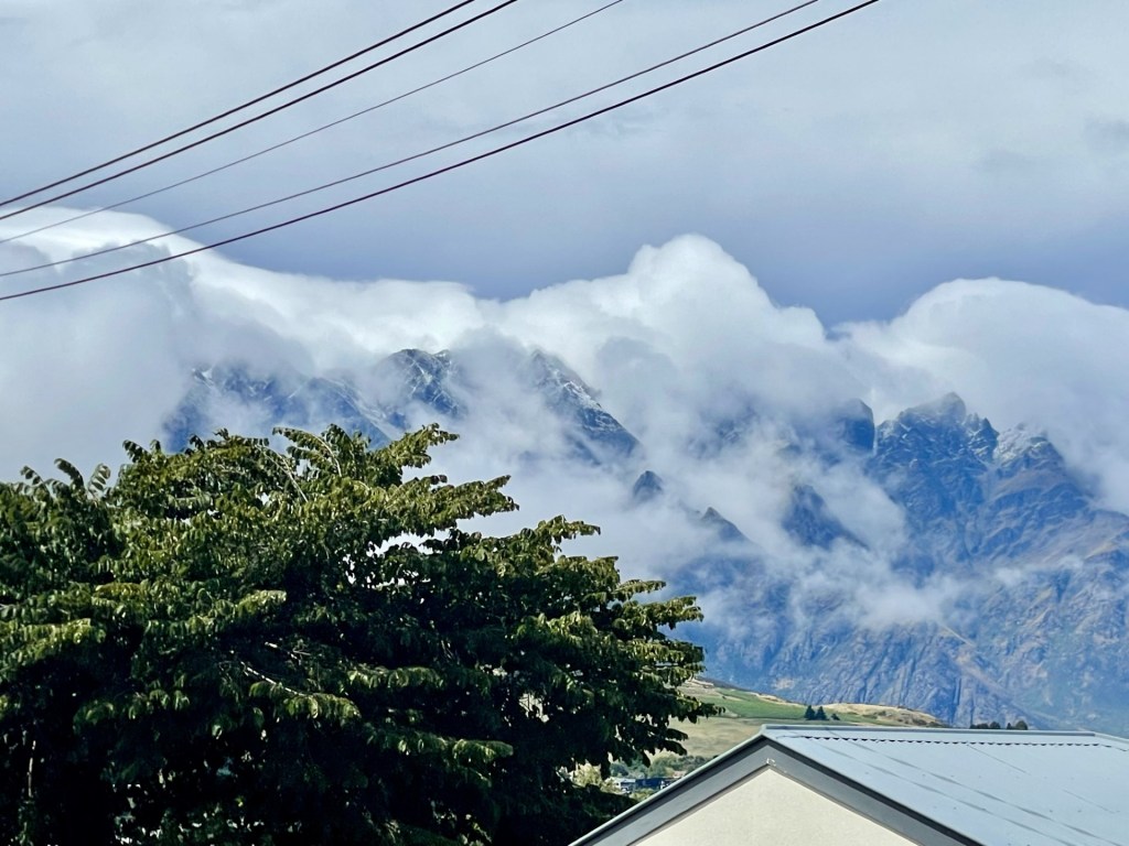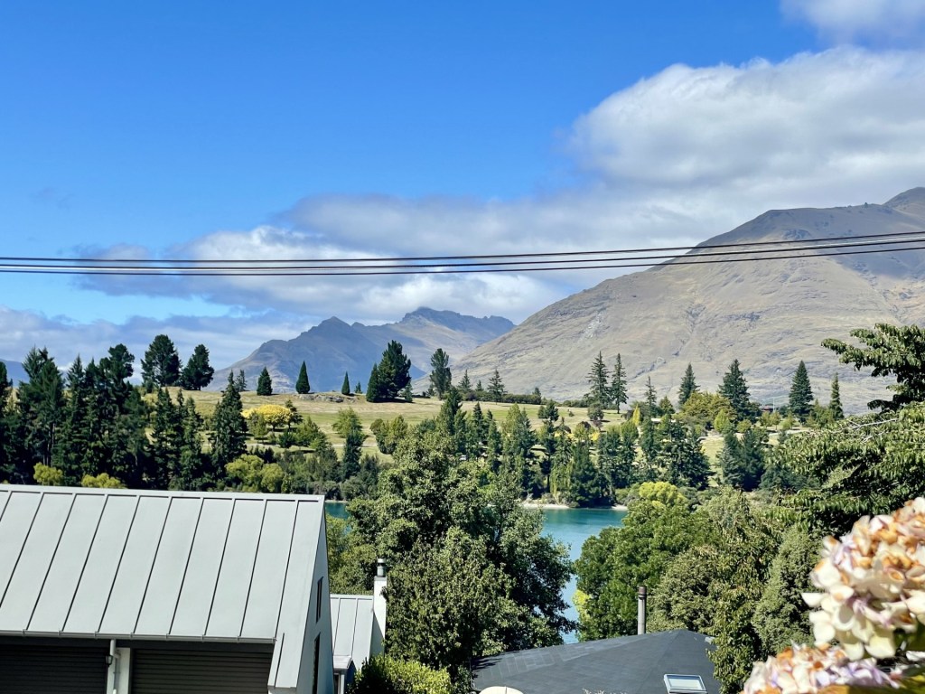 Queenstown hsa been our “home” for nearly 10 days now, with another 3 days remaining. Again, we learned our way around the town. We ran the local running trails. Our VRBO accommodation transformed into our home-away-from-home and it now feels cozy and lovely. Here’s the view from the window over our kitchen sink – it’s hard to beat!
